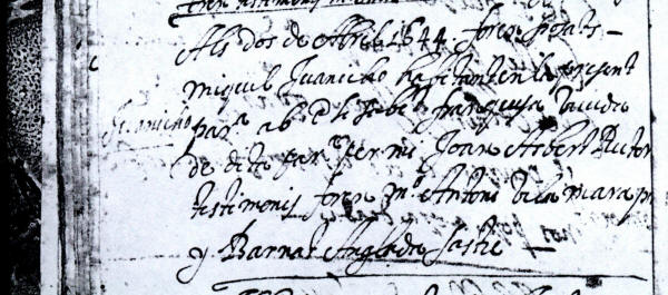 Inscripció del que fou el primer casament de Miquel Juanico a St. Quirze, amb Elisabeth Franquesa, vídua (abril 1644) Inscripció del segon enllaç de Miquel Juanico a St. Quirze, amb Elianor Rubert, vídua (agost 1649), matrimoni del que procedim